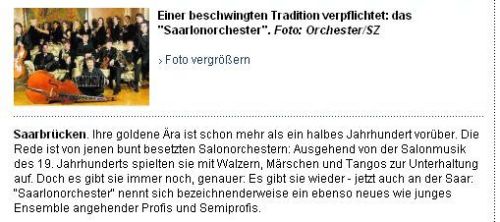 Posted in Presse, tagged Großregion, Saarlonorchester, Salonorchester Saarbrücken, Unterhaltungsmusik on 9. Februar 2010|